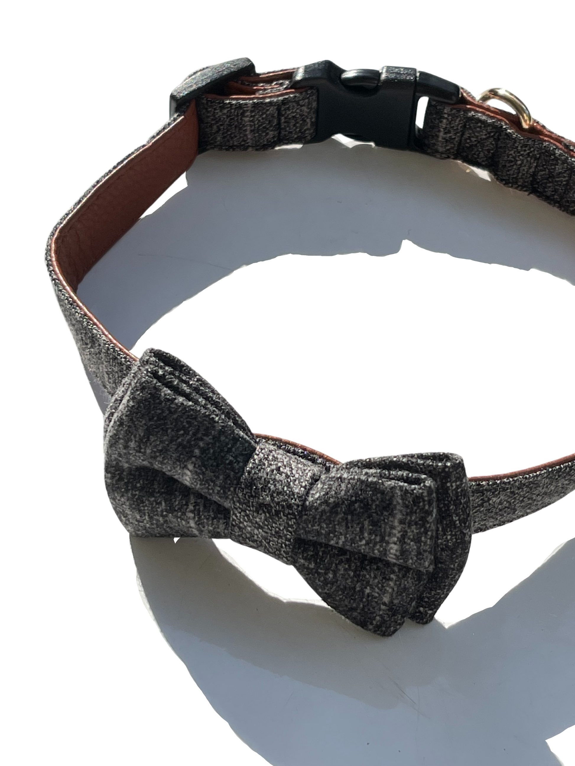 Comes with a bow tie, scarf, and matching lead.