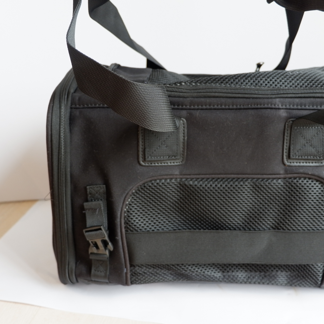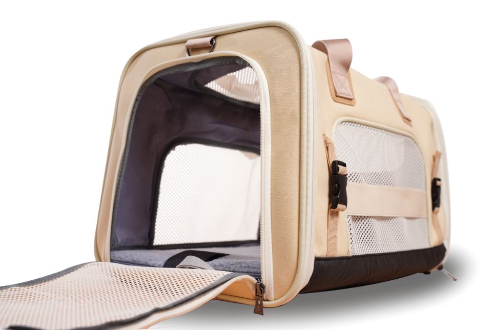 Its design features mesh ventilation to ensure your dog enjoys adequate airflow and visibility. Easy to flat down for storage. Needs only a light wash in the laundry. Its design is airline approved and is suitable for pets up to 15lbs.
