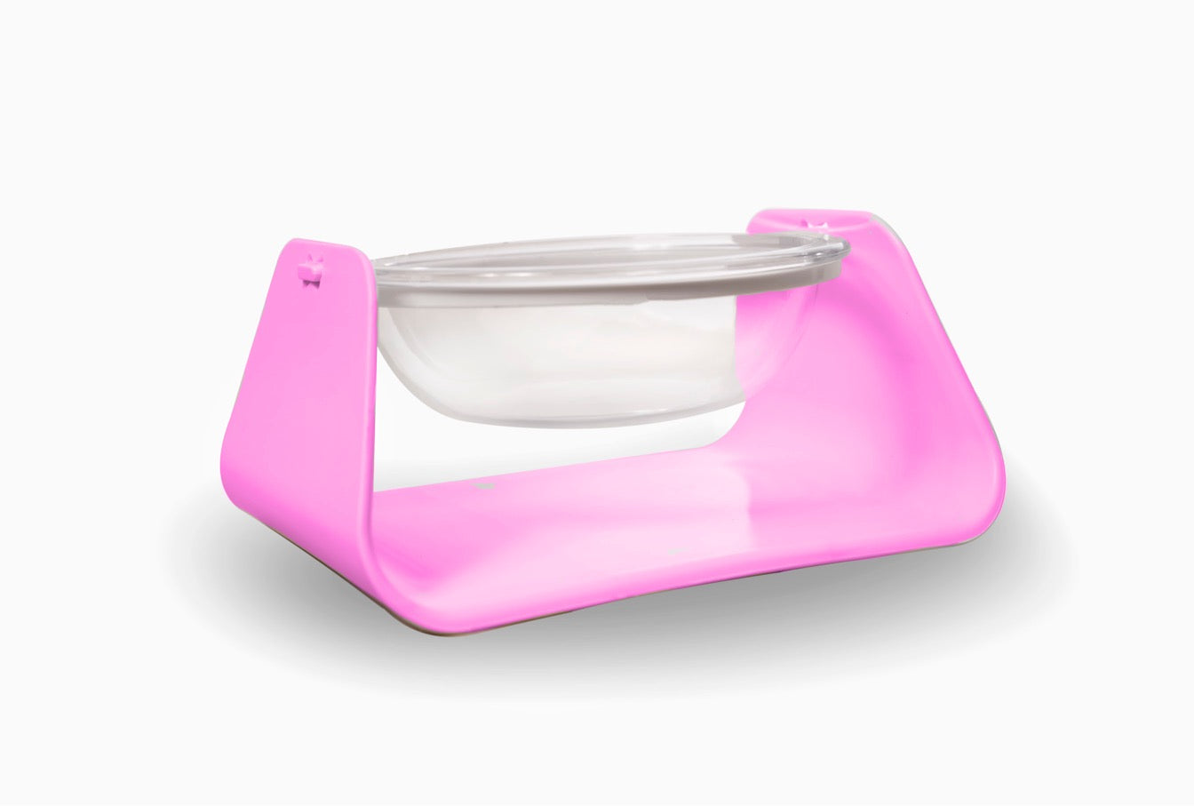 Modernly designed, it's clear bowl makes it easy for us to check if it's time for a refill! This bowl is elevated and helps stop the swimming/digging behavior especially in their water bowls. Its ergonomic design may also help improve posture and possible neck pain while feeding.